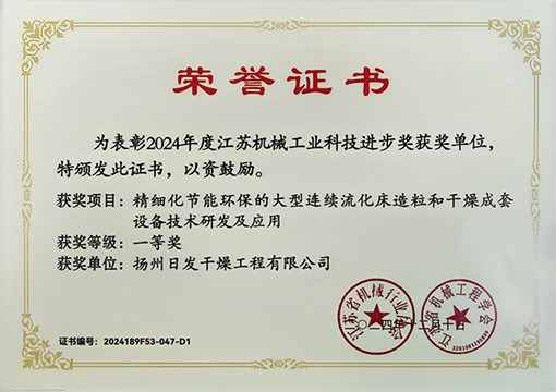 42、新产品鉴定证书:精细化节能环保的大型连续流化床造粒和干燥成套设备技术;苏机协鉴字【2024】36号