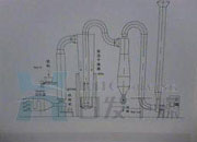 流程:过滤后的空气,在散热器中由蒸汽加热到130-150度,进入气流干燥管。湿物料由螺旋加料器送入气流管后,在高速热气流中,1-2秒内物料表面水份急速汽化,同时气流温度也急速下降(旋流干燥器进口温度50-70度),物料停留时间在15-30分钟。