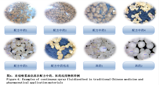 连续喷雾流化床在酶制剂、甜味剂应用物料举例,如图3。 连续喷雾流化床在配方中药、医药应用物料举例,如图4。