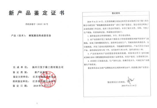 扬州日发新产品“赖氨酸造粒成套设备” 鉴定达国内领先水平